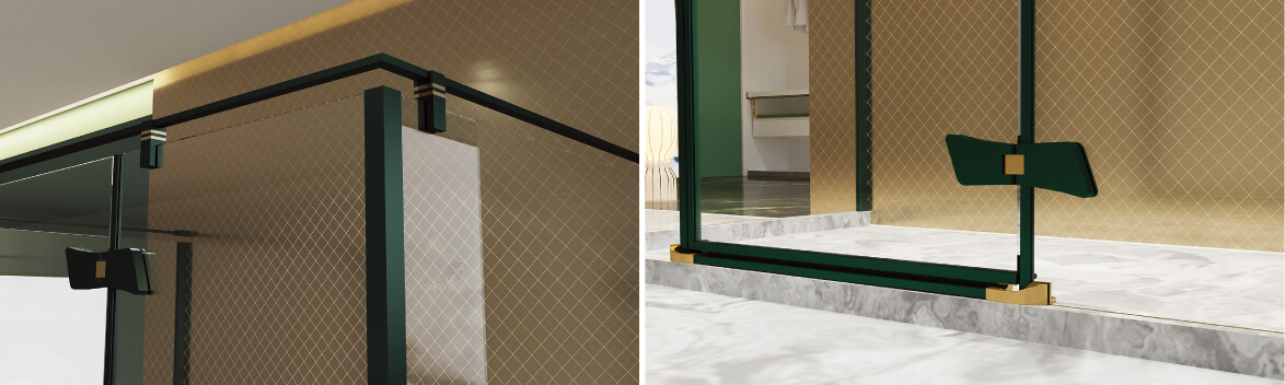圆线金,方块,金属的碰撞衔接融合,江南建筑精髓的高度提炼,抒发着淋浴房,别样的风格。
